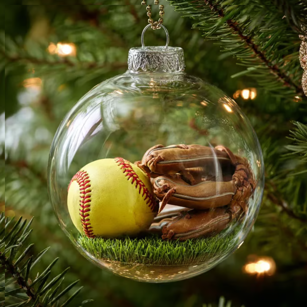 Finish: Glossy clear sphere with metallic silver cap and hanging loop.