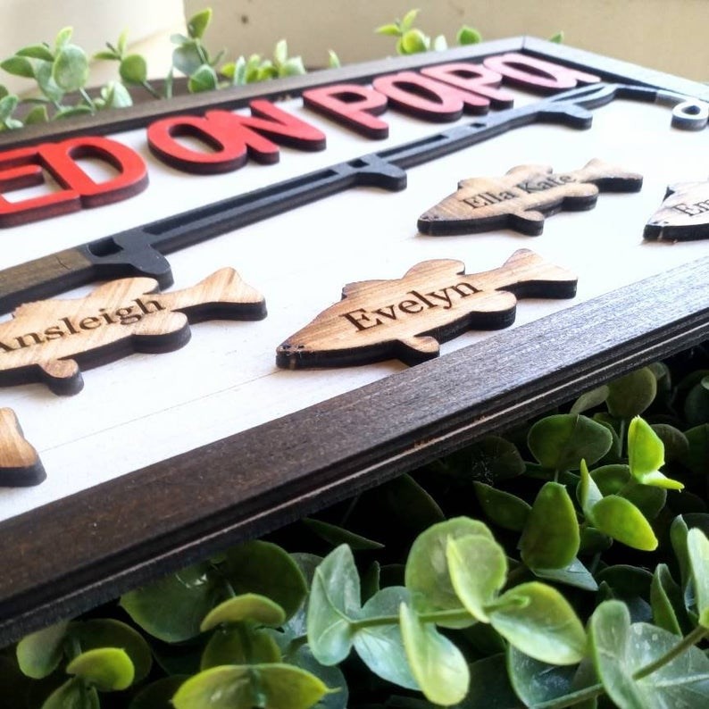 This lovely fish sign can be personalized with your children's signatures to create a gift that grandpa or dad will treasure forever! The word "Grandpa" can be customized to the text that you would like. The children's names can be done in a basic font or you can message me the signatures to add that personalized touch!