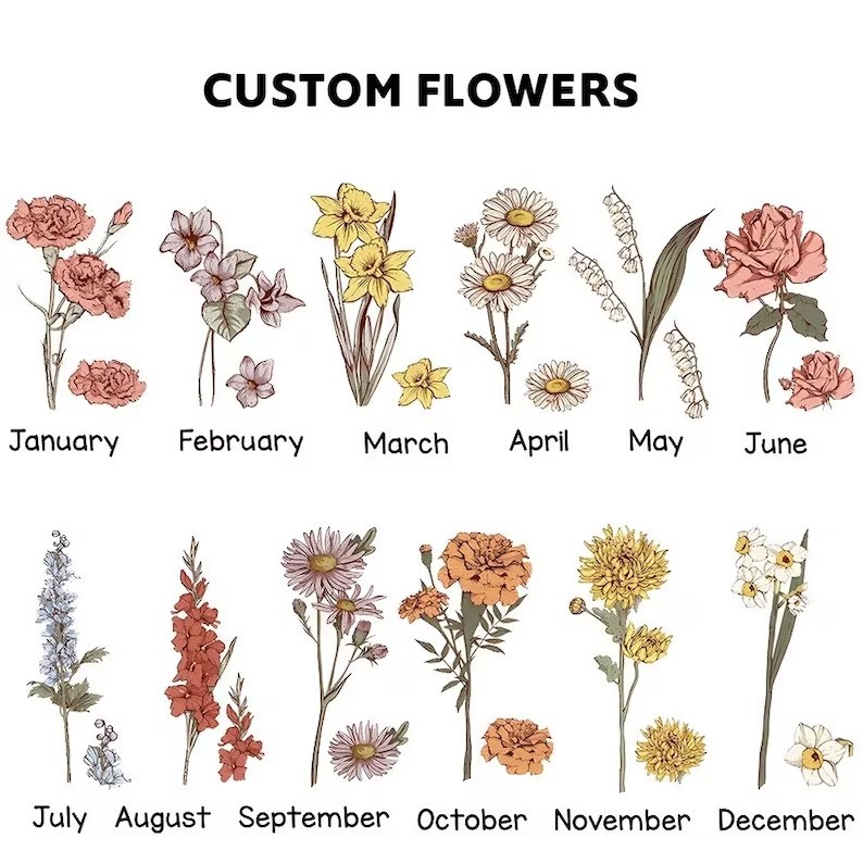 this custom art is sure to be cherished for years to come. Each design is unique and features the birth month flower and name of your choice.
