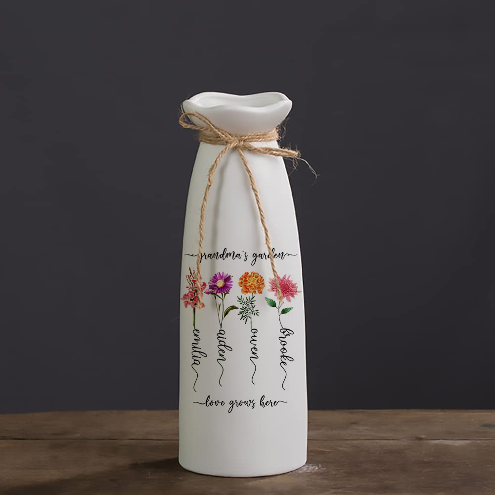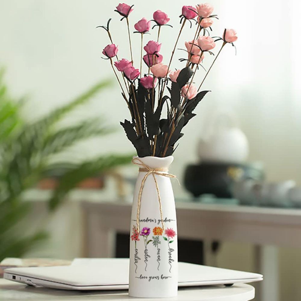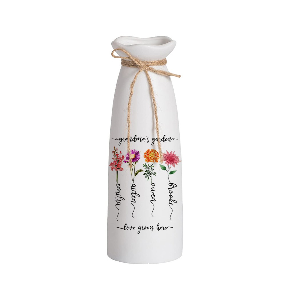 Personalized Birth Month Flower Vase with Grandkids Names, Mothers Day Gift