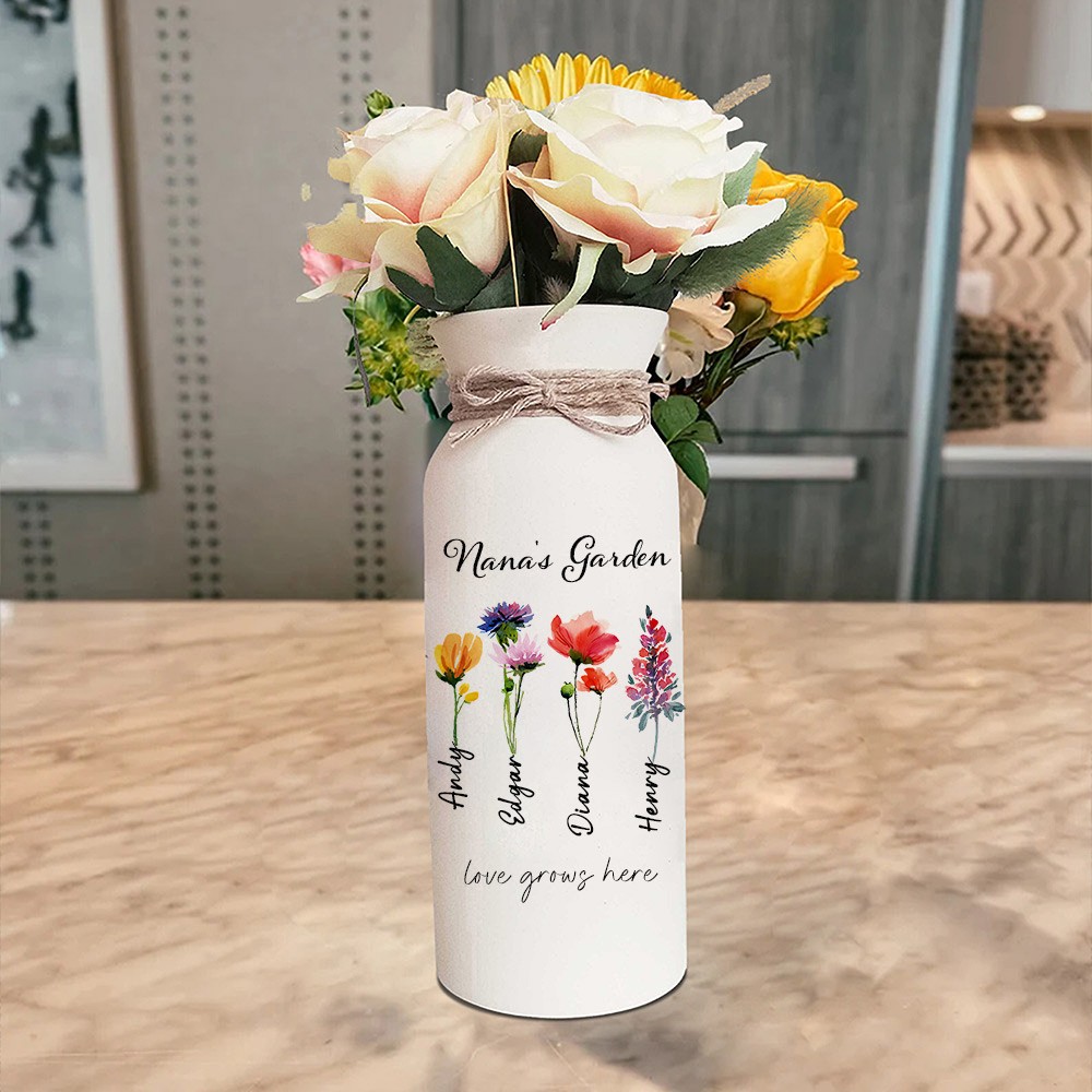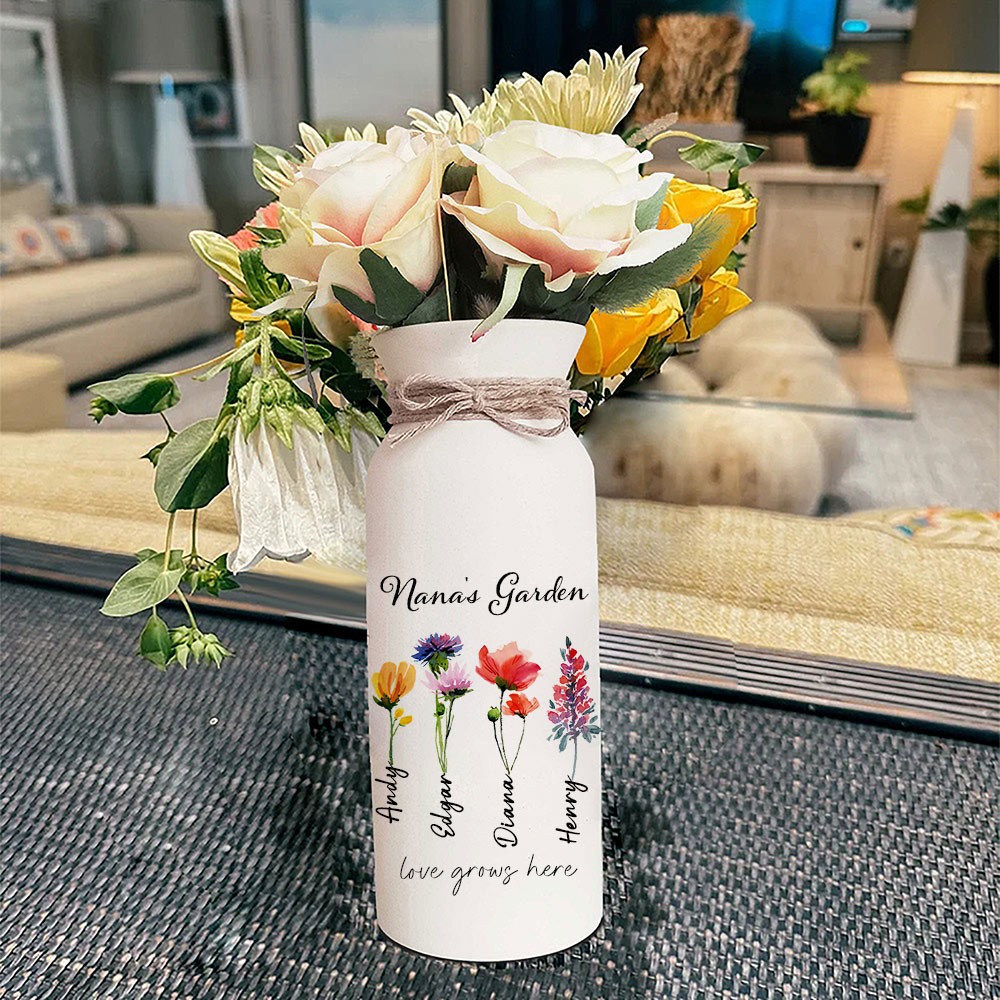 Personalized Birth Month Flower Pots with Grandkids Names, Mothers Day Gift