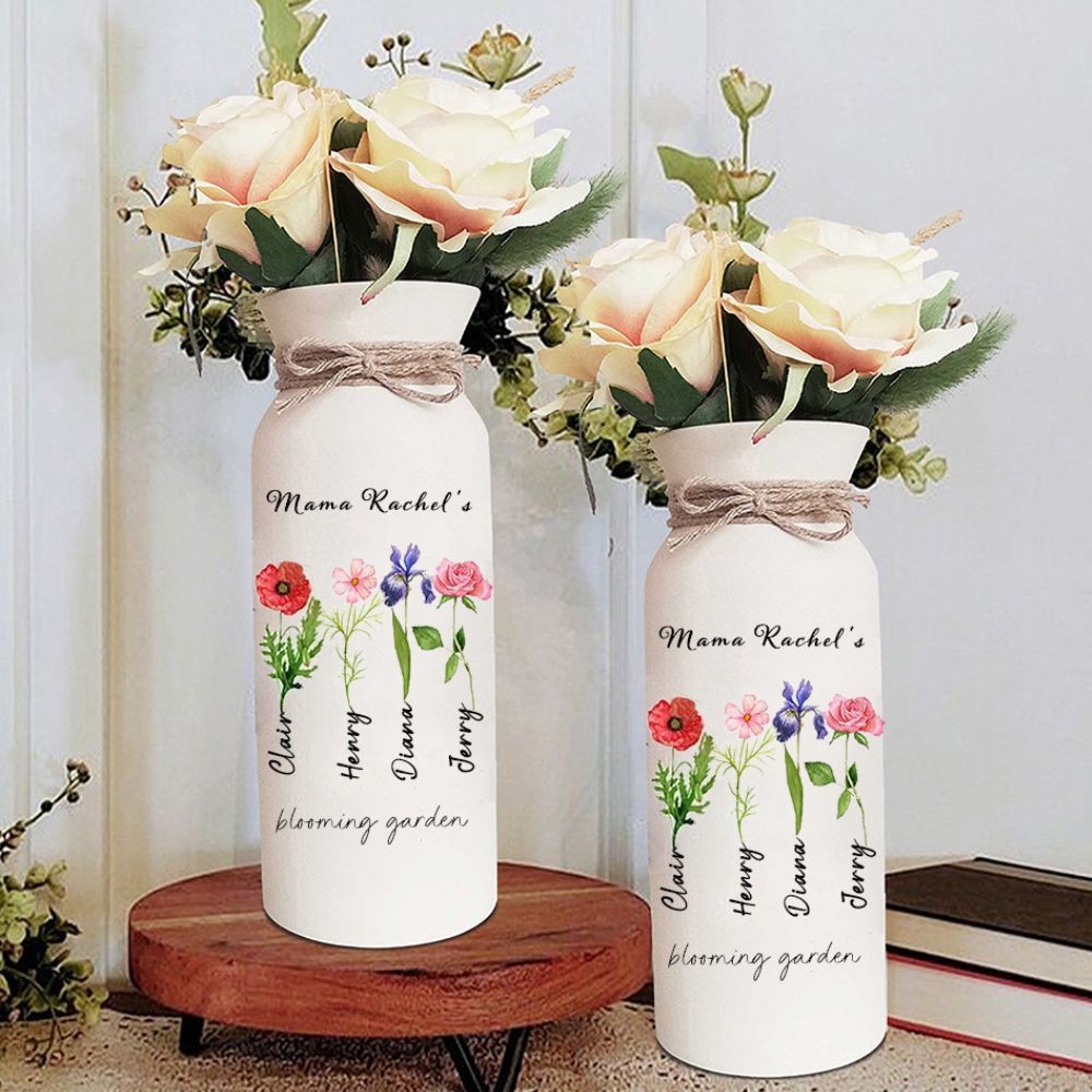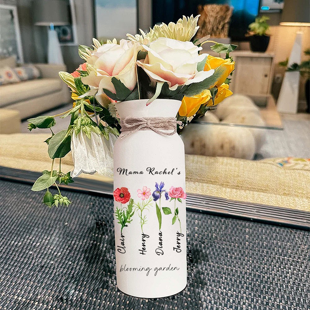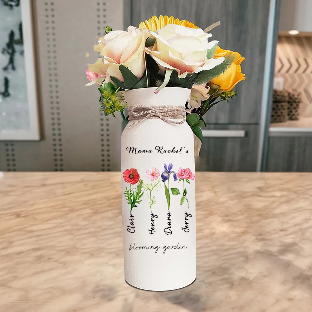 Personalized Birth Month Flower Vase with Grandkids Names, Mother's Day Gift