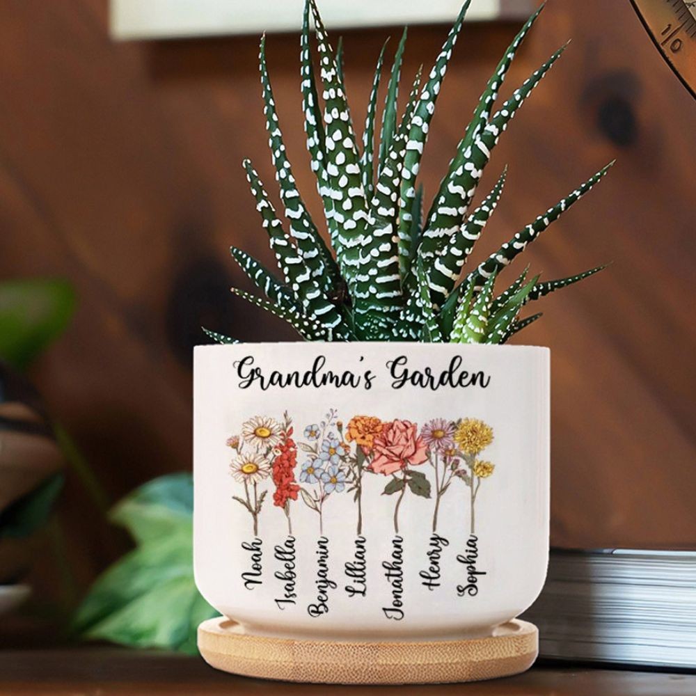 Personalized Birth Month Flower Pots with Grandkids Names, Mother's Day Gift.