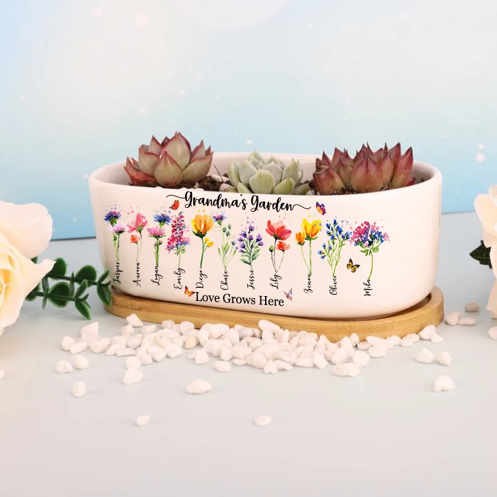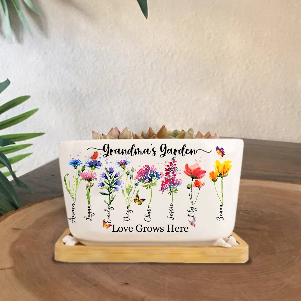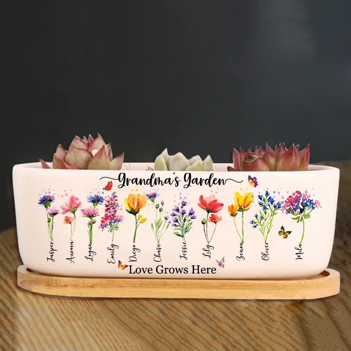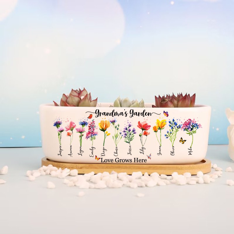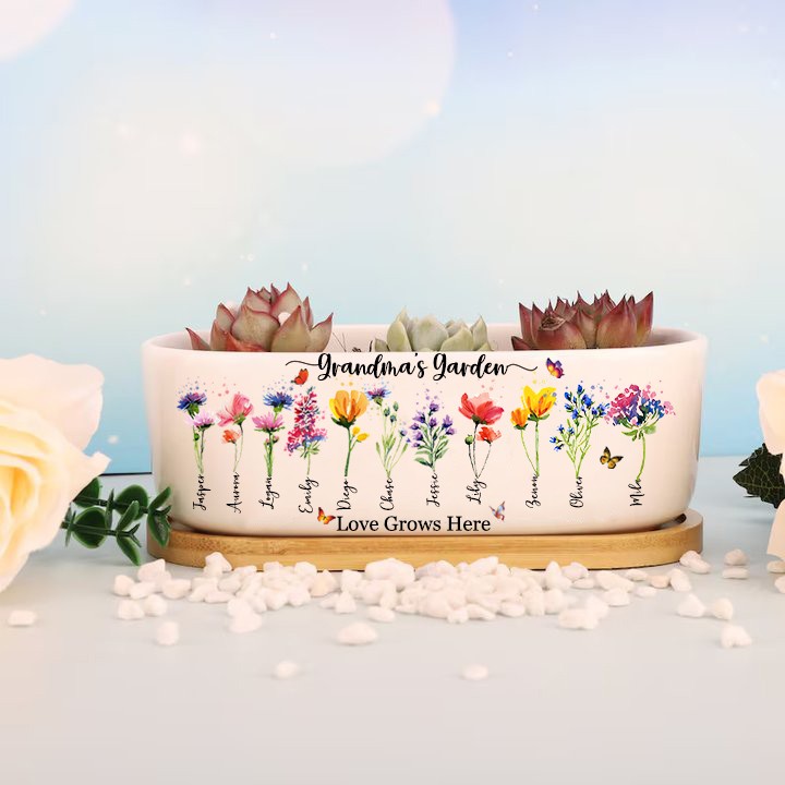 Personalized Birth Month Flower Pots with Grandkids Names, Mother's Day Gifts.