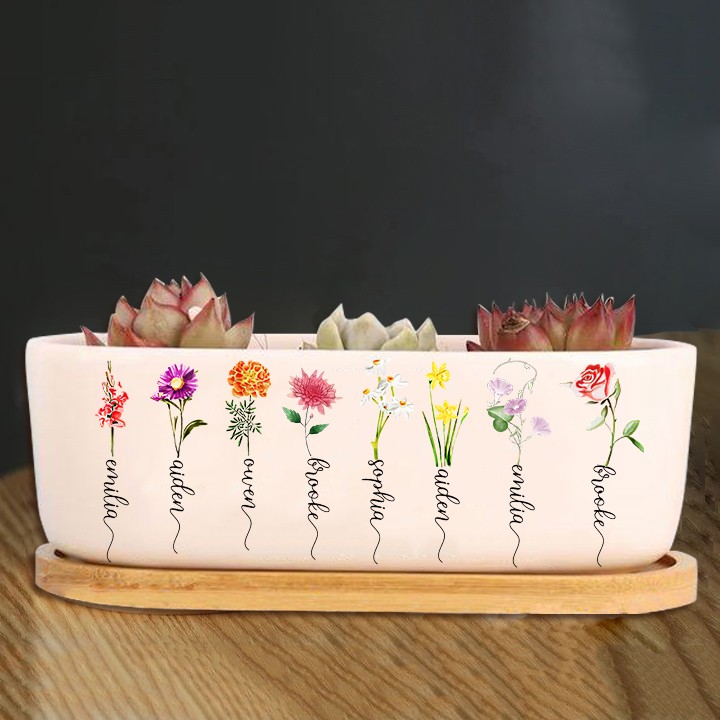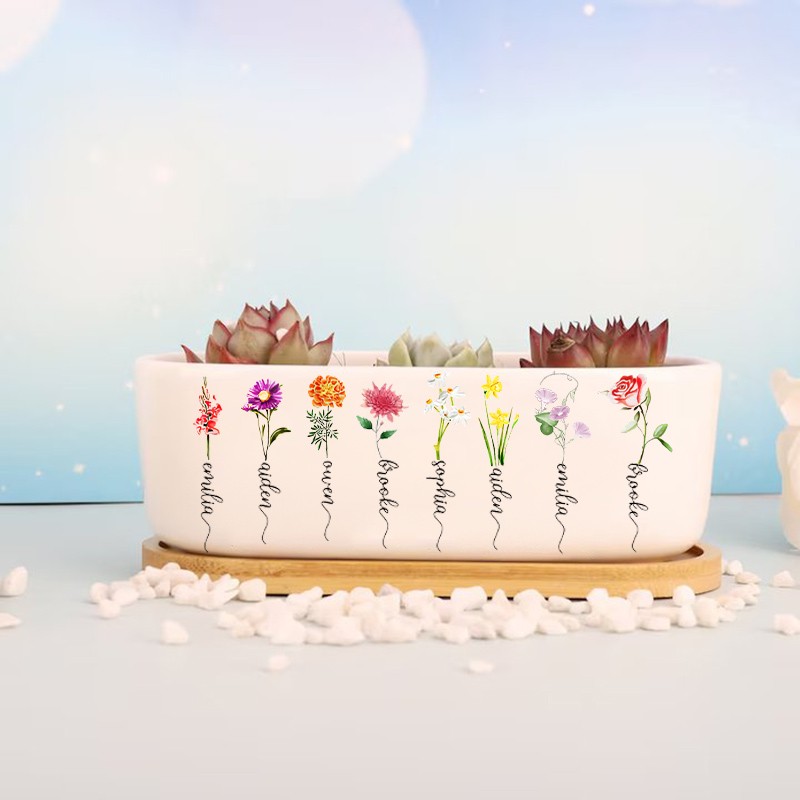 Personalized Birth Month Flower Pots with Grandkids Names, Mother's Day Gifts.