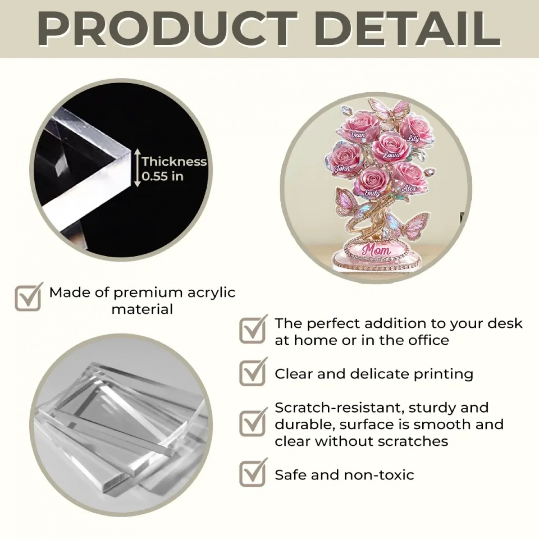 Custom Family Rose Tree Acrylic with Names Butterfly Flower Decor for Mother’s Day