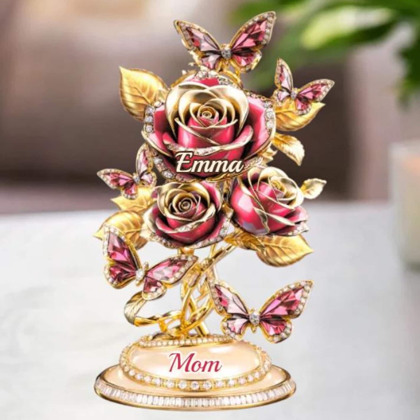 Custom Family Rose Tree Acrylic with Names Butterfly Flower Decor for Mother’s Day