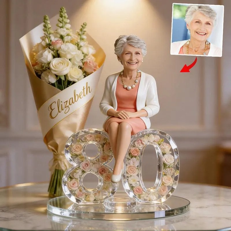 Gift For Her - Flower Bouquet And Number - Personalized Birthday Custom Shaped Acrylic Plaque