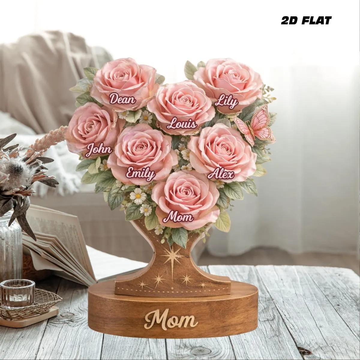 Personalized Mom Flower Family Acrylic Plaque, Custom Rose Tree with Kids Names, Mother’s Day Gift for Mom Grandma Decor Home, Mom Gift