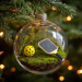 Finish: Glossy clear sphere with metallic silver cap and hanging loop.